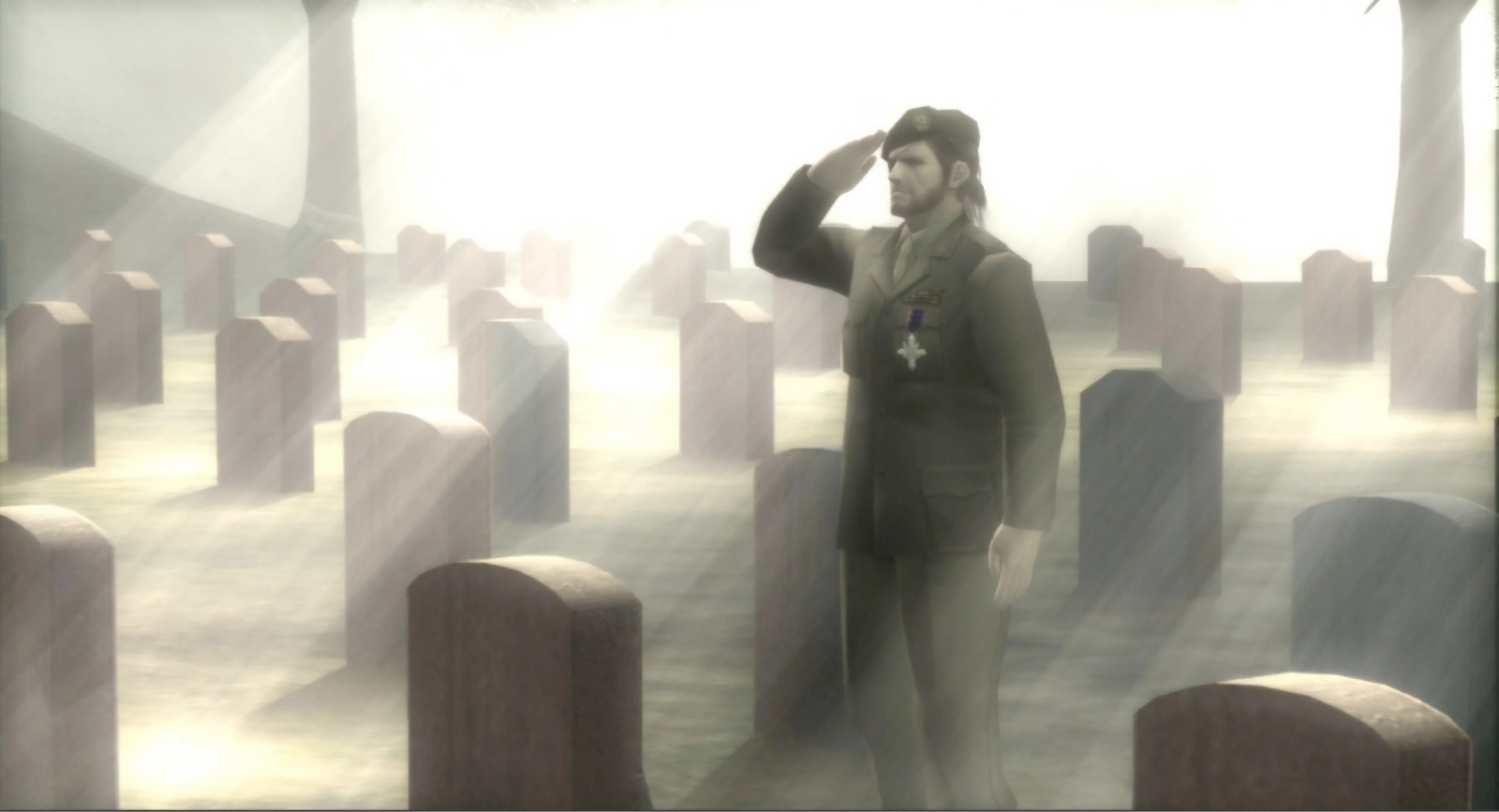 I cry every time I revisit it, when the newly-honored Big Boss salutes his mentor at the graveyard. When I was too young to be playing it, when my English comprehension was broken and the meaning of certain words escaped me, I bawled my eyes out during Snake Eater’s ending. I didn’t understand, yet, that I could throw a snake at a patrolling guard, or challenge Ocelot to a revolver duel, or set my console’s calendar forward to rob my friend, the End, of his final battle. The language barrier blurred the game’s political depth and narrative intricacies. Still, I cried because I knew Naked Snake and the Boss loved each other, and it was tragic that one of them had to die. Now one stands alone at the other’s grave and sheds a single tear.